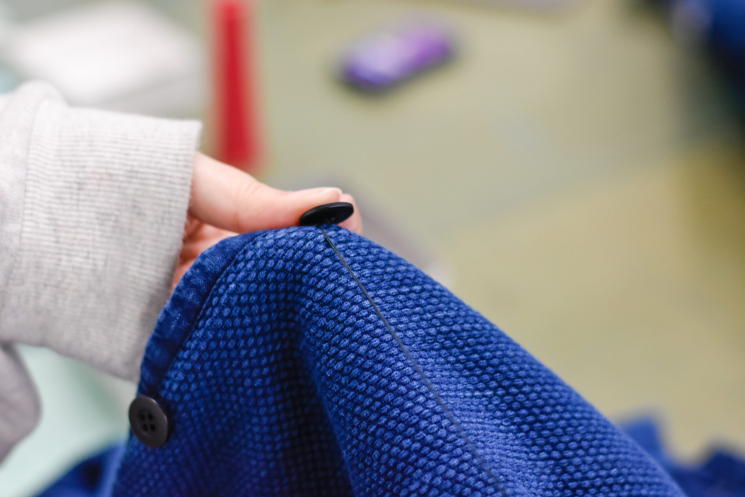 井筒:生産管理の仕事には柔軟な対応が求められます。起きた現象に対して自分がどう動くか。前向きなアクションができる人が向いていると思います。例えば、縫い場の人たちの現場はある程度仕上がりの納期に関してスケジュールを組んでいるので突発的な仕事の依頼が発生することは少ないのですが、それに比べると生産管理の仕事は、急に予定が変わることが多いです。やっぱり、ハプニングが起きるときは起きるので、それに対して臨機応変にアプローチできるかにかかっています。現実に対峙して前向きに解決する能力も必要だし、最悪の事態を想定して危機管理することも大切。どんな状況であっても、前向きに捉えられるような心持ちが大事です。