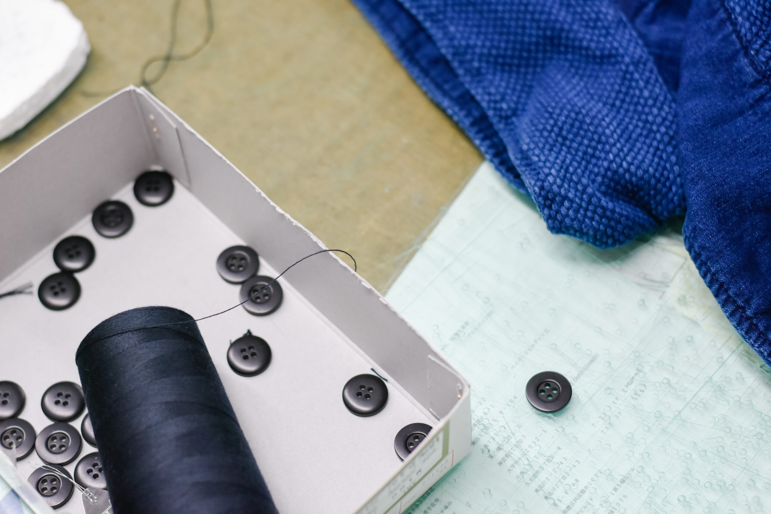 井筒:お客様に対して、どんな服を作りたいのかを綿密に伺うことからスタートします。お客様が作りたい服は、イメージが先行していて現実的な裏取りがなされていないこともあるので、僕らがイメージと現実の境界を埋める作業をします。その後に、内容に合わせて生地素材の提案をします。近隣の生地メーカーと協業して一緒にやっていますが、素材の決定には時間がかかるもの。「昨日、何百メートルあると思っていた生地が今日はない」ということがザラにあるんです。そうしたことを念頭に置き、生地メーカーと密にコミュニケーションを取ったり、新たな生地を開発したりすることは大切な仕事です。そして、作業をしてもらう工場の労働力の確保もまた、生命線。工場も先方の業務の進行具合で状況が変わってしまうことも多々あるので、そうした中で、安定して仕事を継続できる関係性を構築することも大切なことです。状況の変化によって、ときとしてピンチが訪れることもあります。そうしたときに無理を聞いてもらえる間柄になれるか。顔と顔を突き合わせた深いコミュニケーションが鍵になります。